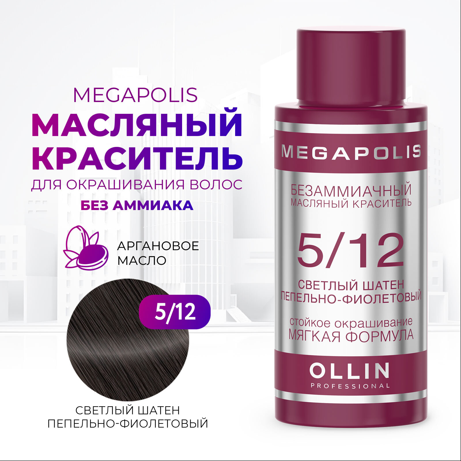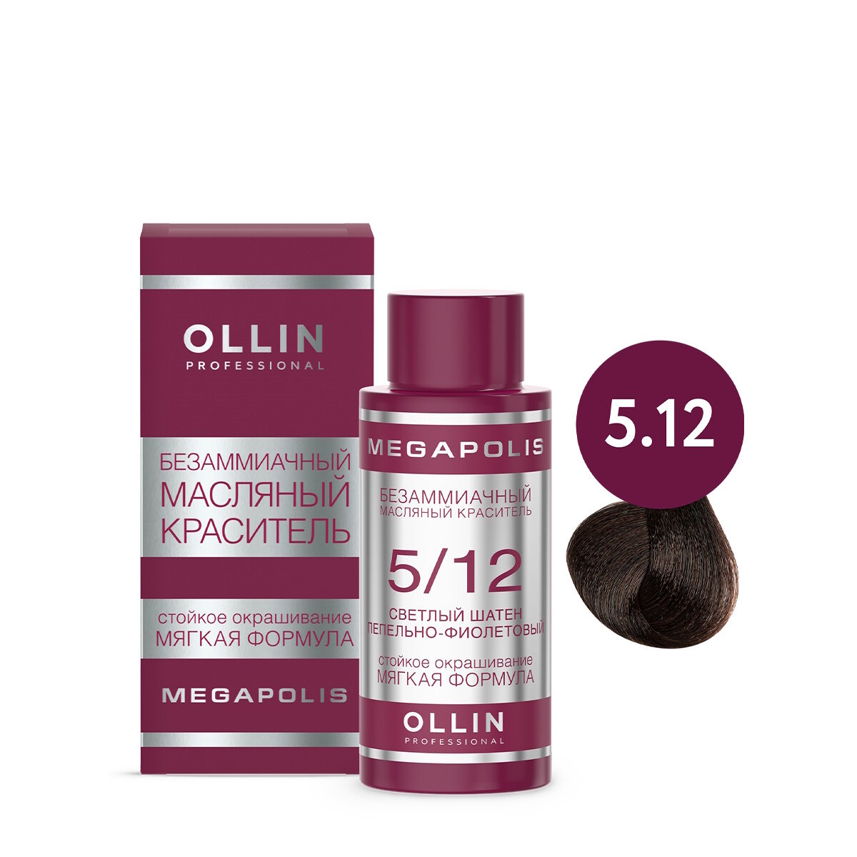 Купить Масляный краситель MEGAPOLIS для окрашивания волос OLLIN PROFESSIONAL 5/12 светлый шатен пепельно-фиолетовый 50 мл
