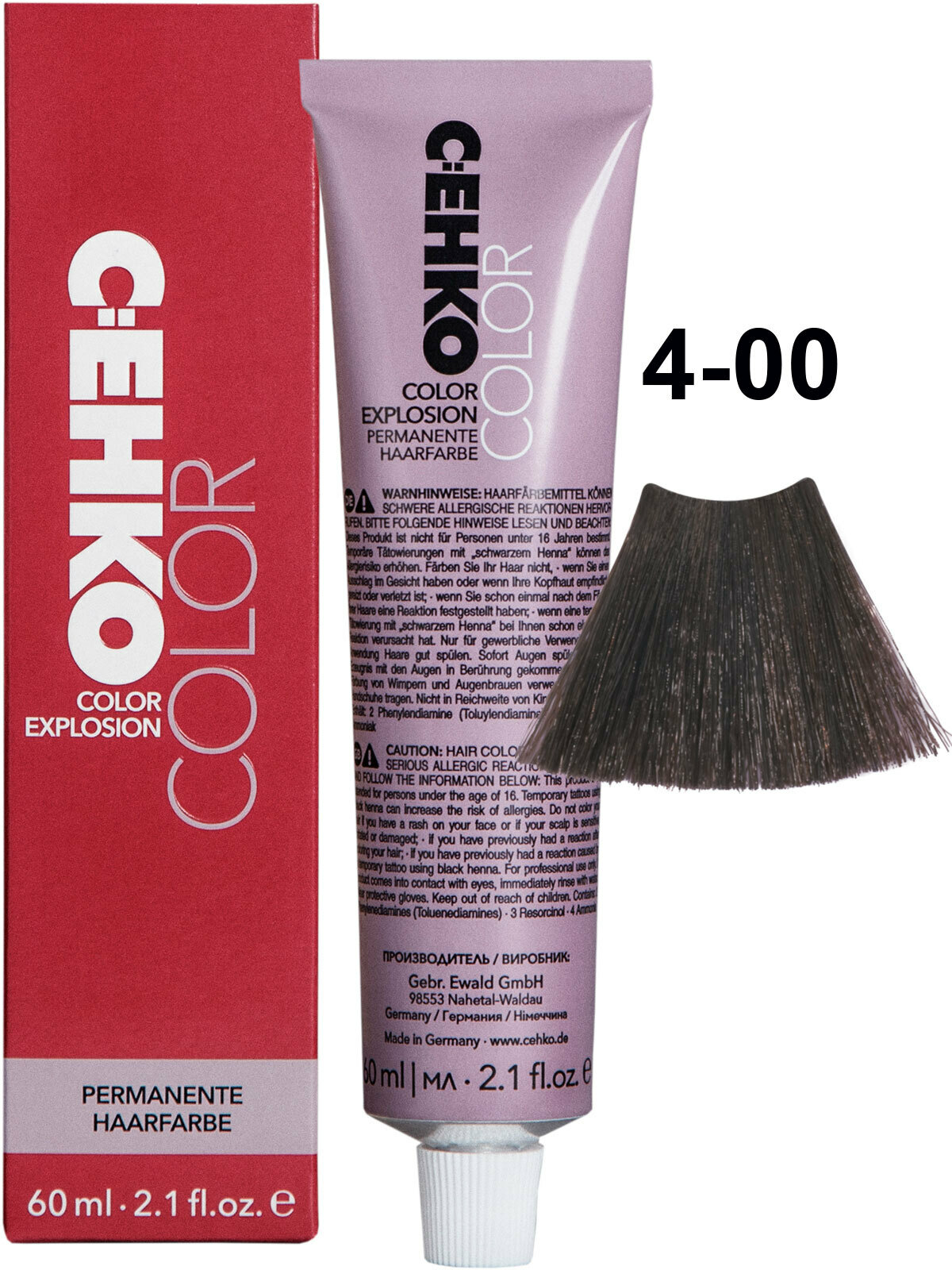 Профессиональная краска для волос 4/00 Коричневый насыщенный, натуральный, темный, стойкая, перманентная, для седых волос, 60 мл, C:EHKO COLOR EXPLOSION