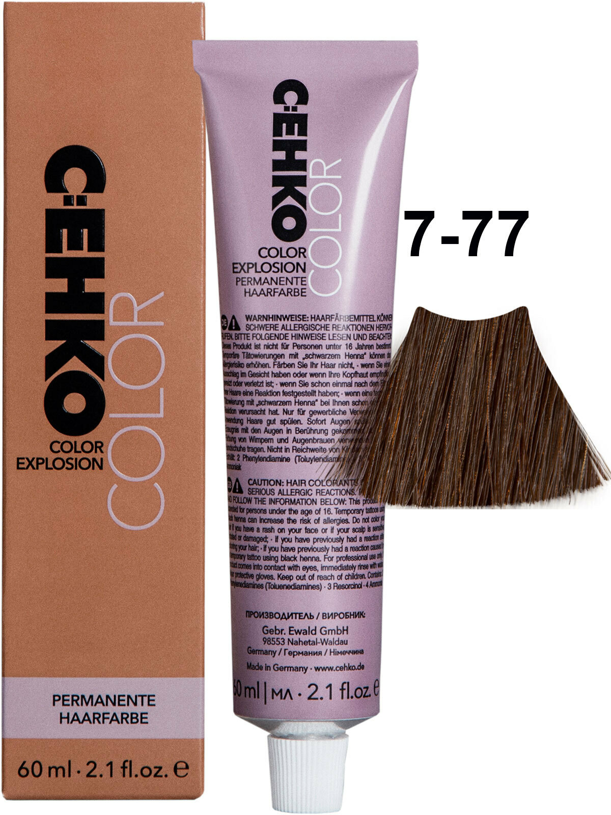 Профессиональная краска для волос 7/77 Латте Макьято, коричневый, шоколад, стойкая, перманентная, для седых волос, 60 мл, C:EHKO COLOR EXPLOSION