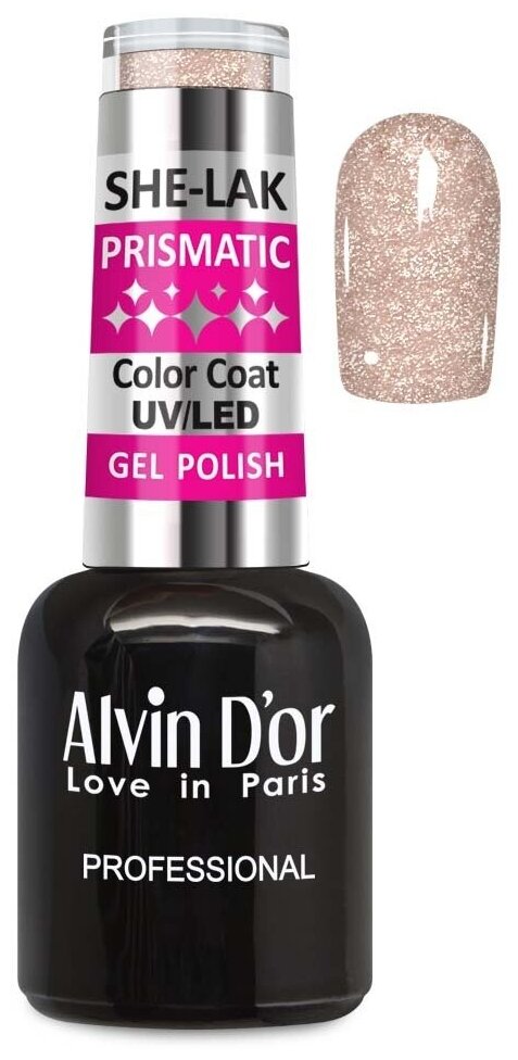 Alvin D'or, Гель лак для ногтей SHE-LAK PRISMATIC тон 5815 бледно-розовый призматик