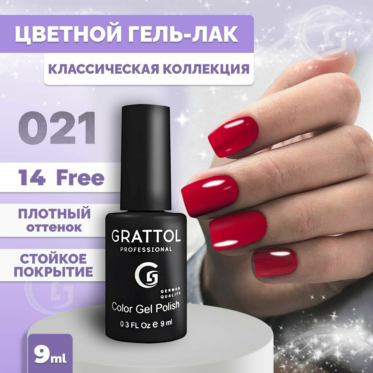 GRATTOL, Гель-лак тон №21, Red Wine, 9 мл