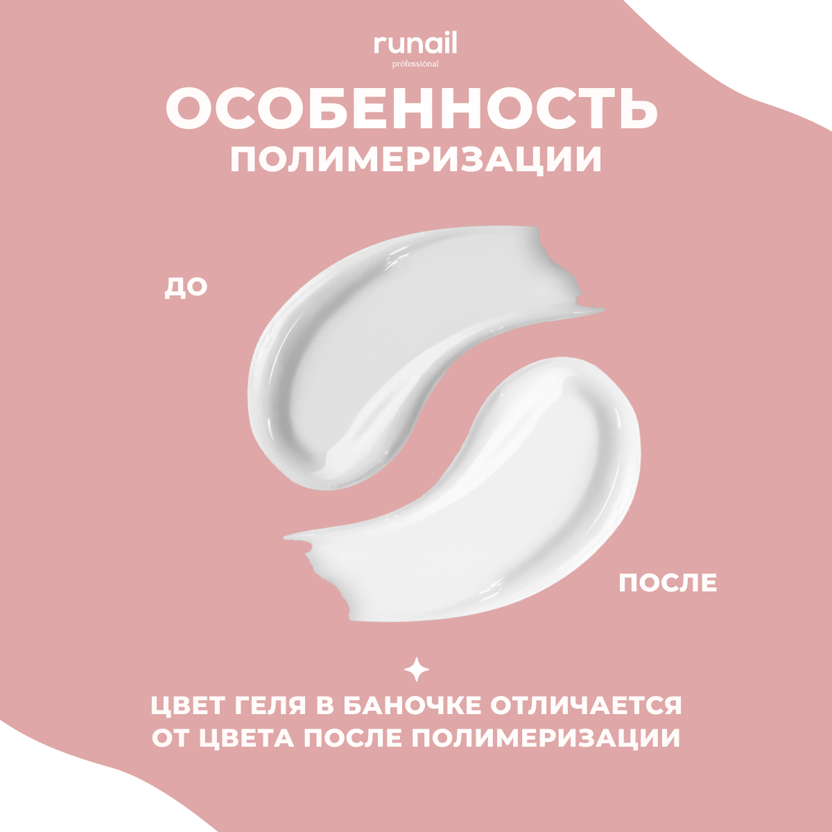Runail Professional уф гель лак для наращивания ногтей моделирующий, однофазный, камуфлирующая база для укрепления ногтей, 6107 Молочный коктейль 56 г