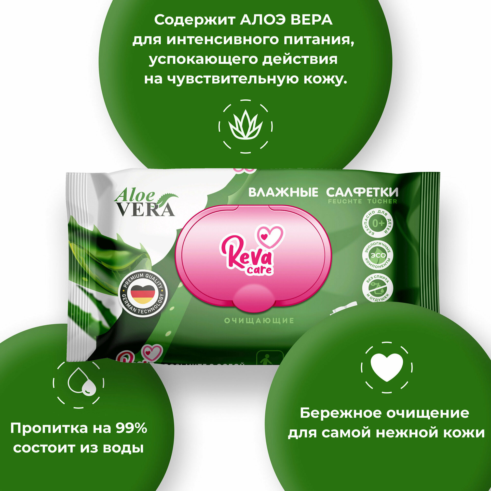 Влажные салфетки очищающие «Алоэ Вера» Reva Care 72 шт