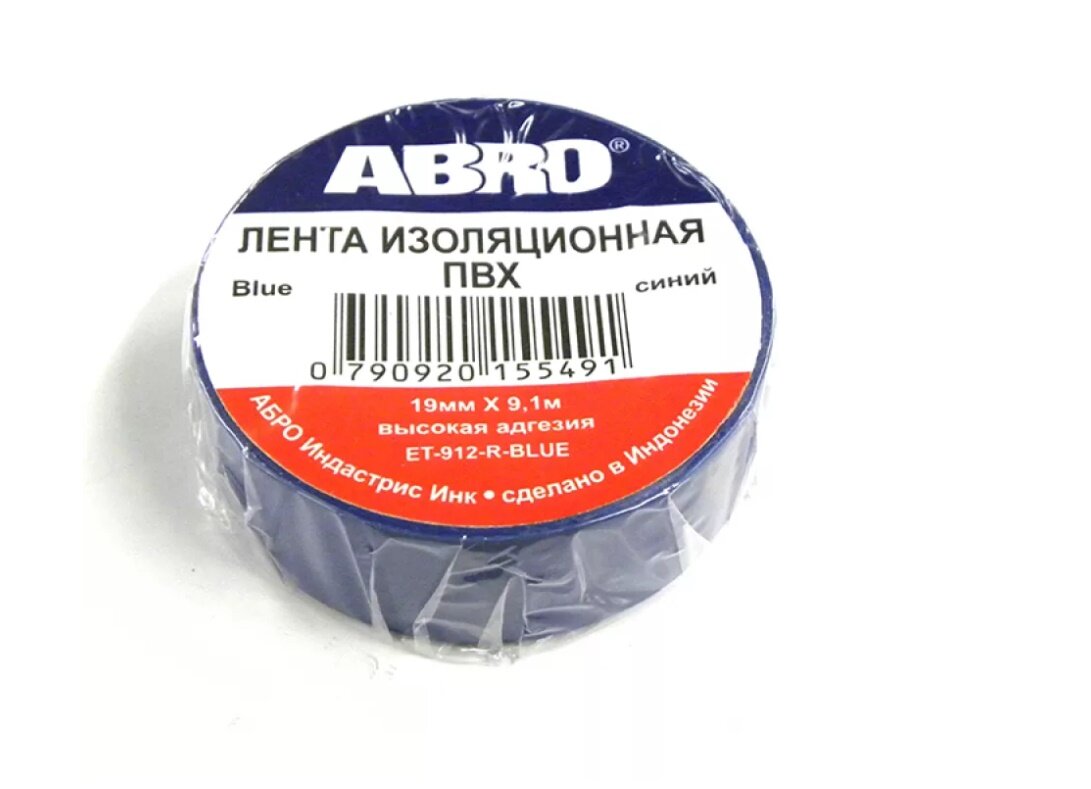 ABRO ET-912-R-BLUE Лента изоляционная 18 мм x9,1м толщина 0,12 мм ПВХ синяя от -3C до +80 C