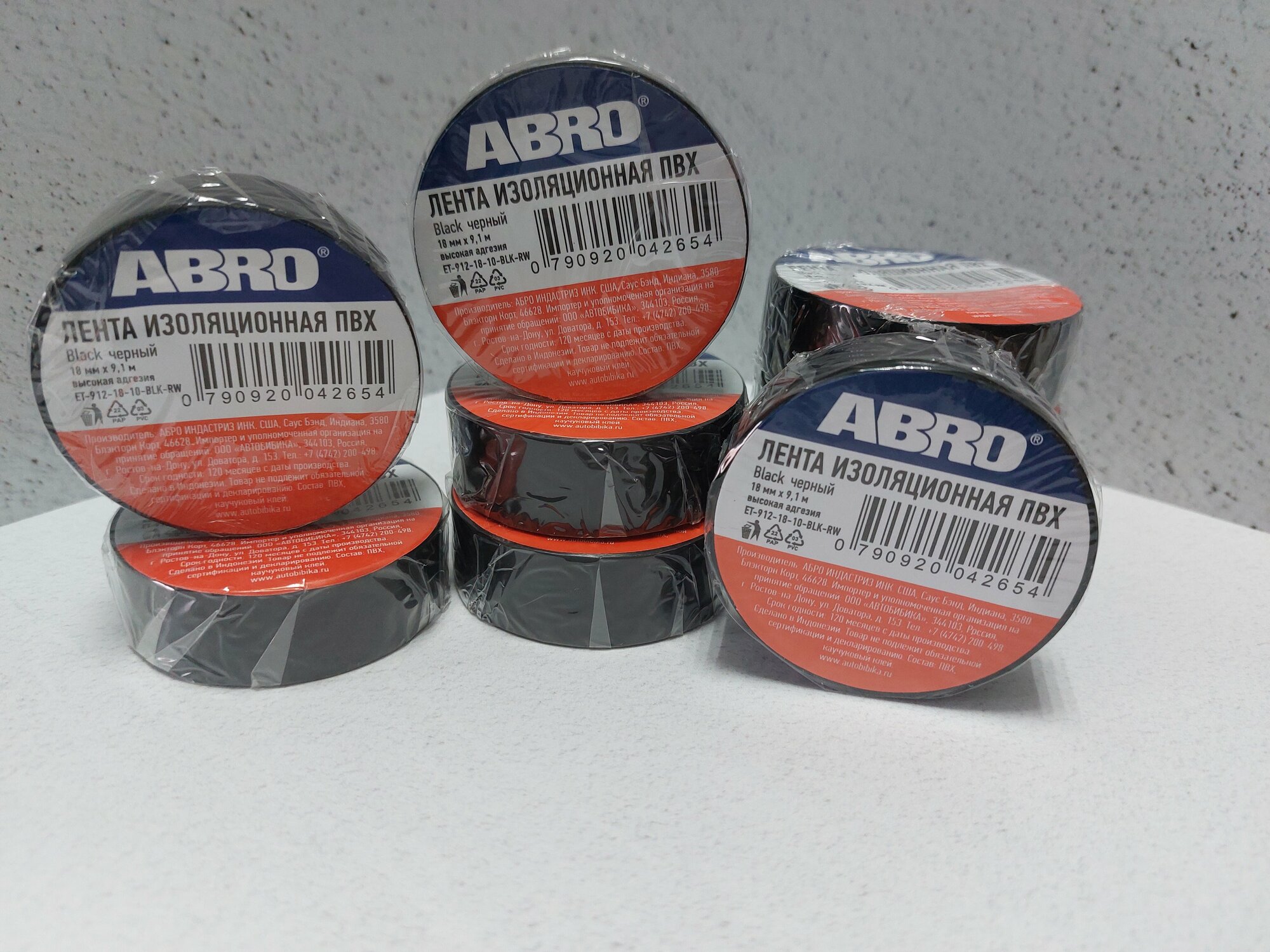 ABRO 'ET912RBLACK Изолента абро черная 18 мм*9,1 м 3шт