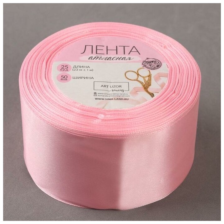 Арт Узор Лента атласная, 50 мм × 23 ± 1 м, цвет розовый №04