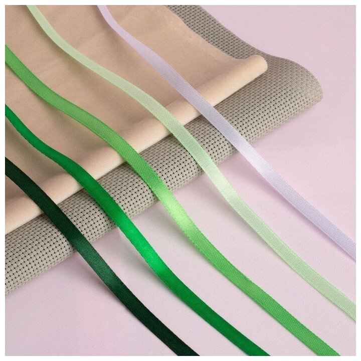 Набор атласных лент, 5 шт, размер 1 ленты: 6 мм ? 23 1 м, цвет зелёный спектр Арт Узор 2611793 .
