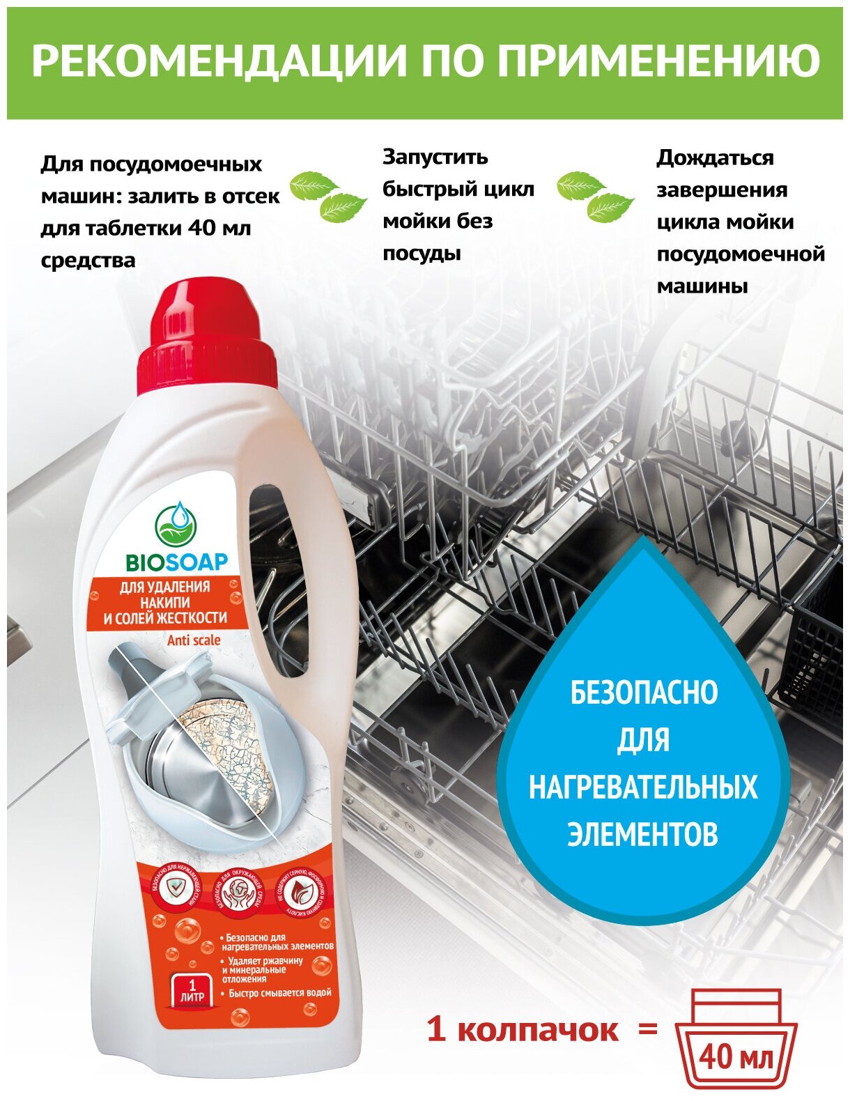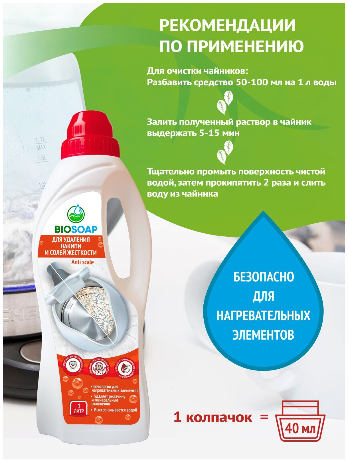 Для удаления накипи и солей жесткости, BIOSOAP, 1л