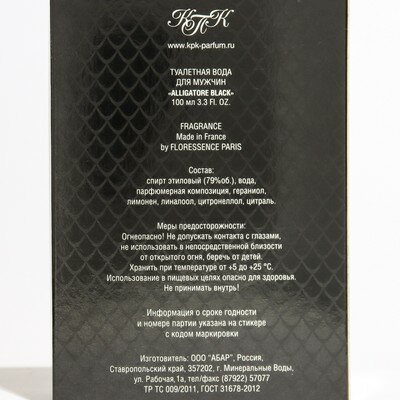 Купить КПК Парфюм / Alligatore Black, 100 мл / Аллигатор Блэк / Мужская туалетная вода