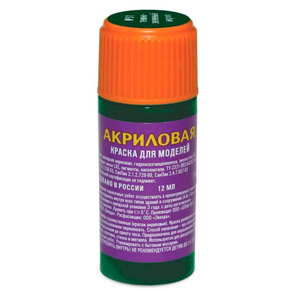 Купить Краска ZVEZDA акриловая, темно-зеленая, 12 мл, ZV-51-АКР