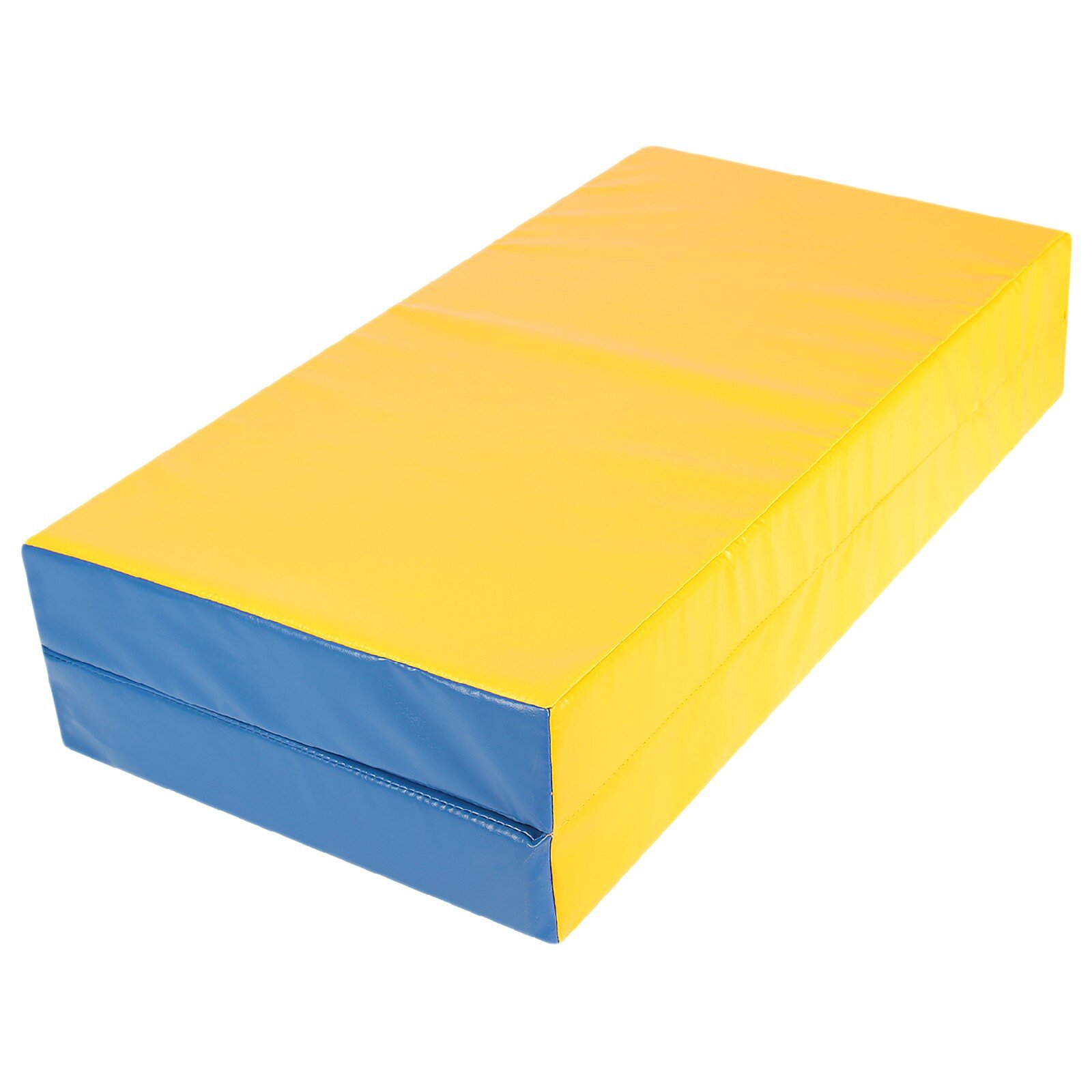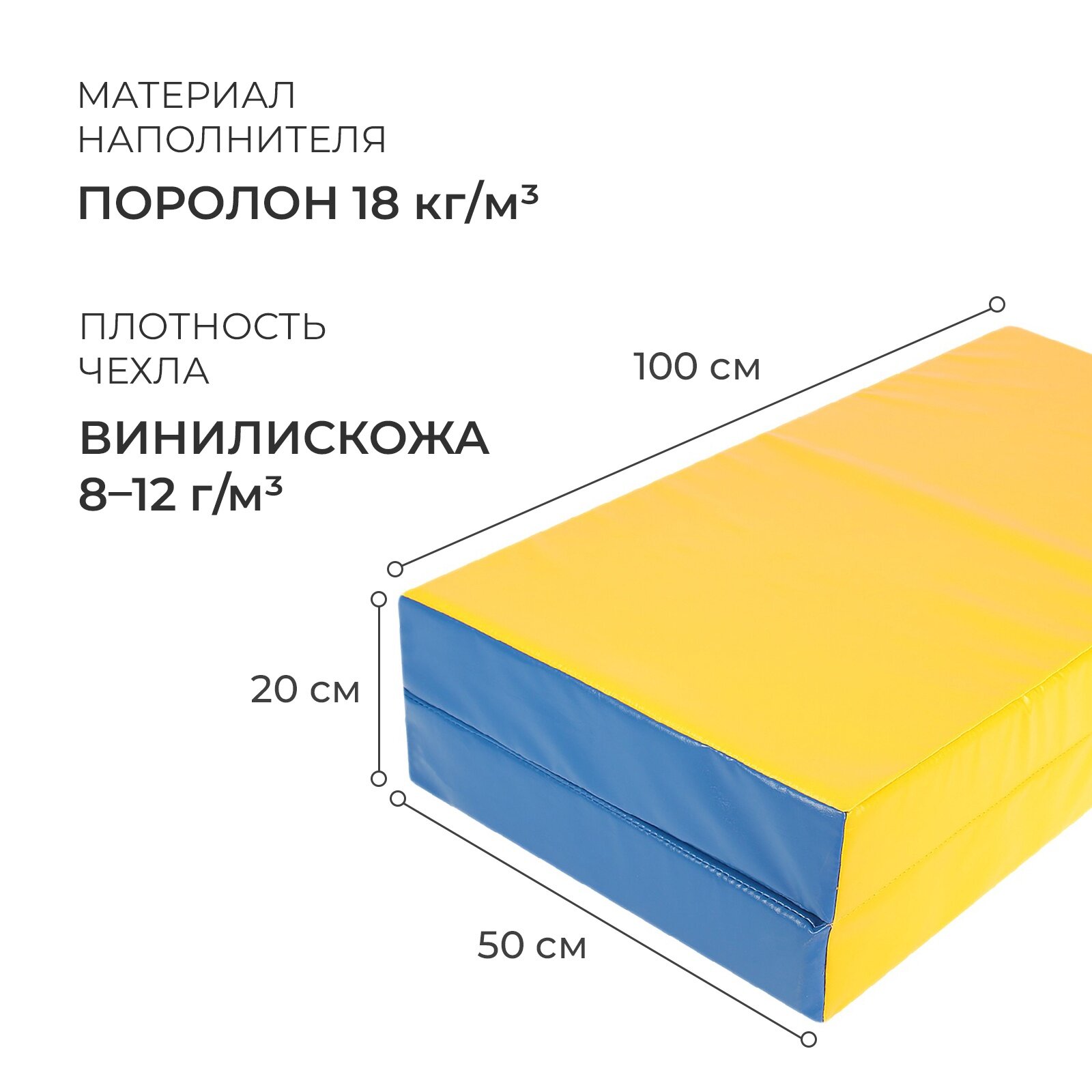 Мат гимнастический складной спортивный для шведской стенки мягкий детский 4 секции 100х200х10 см, толщина 10см. Цвет синий/желтый