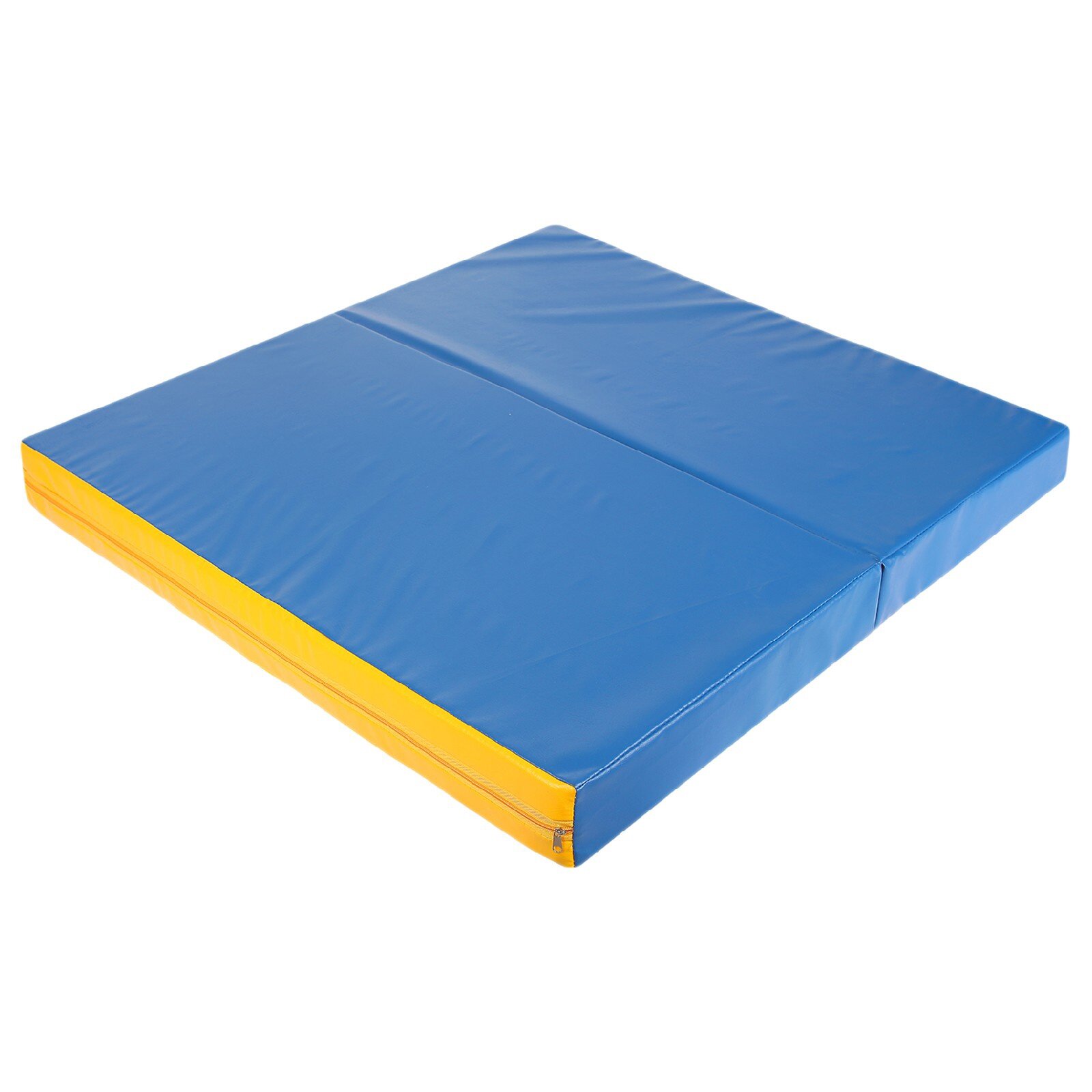 Мат 100 х 100 х 10 см, 1 сложение, винилискожа, цвет синий жёлт