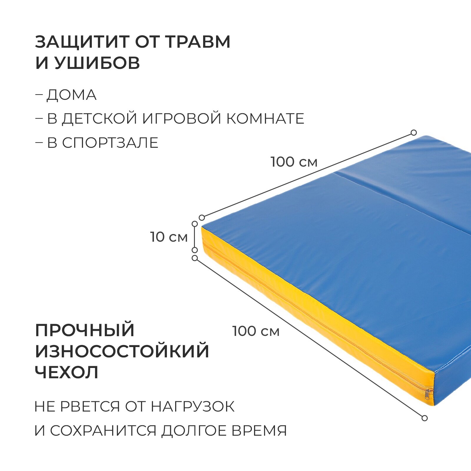 Купить Мат, 100х100х10 см, 1 сложение, цвет синий/жёлтый