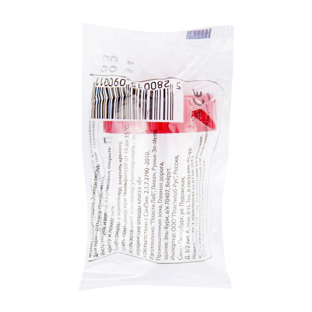Plasti Lab, Контейнер для анализов 60 мл полимерный стерильный с матовым окном, 1 шт