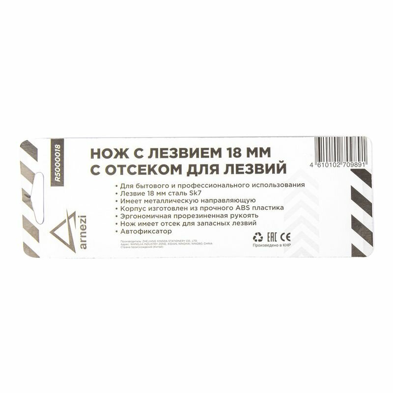 Нож С Лезвием 18 Мм, С Металлическими Направляющими, С Отсеком Для Лезвий, Abs Корпус С Tpr Рукоятко Arnezi R5000018 ARNEZI а...