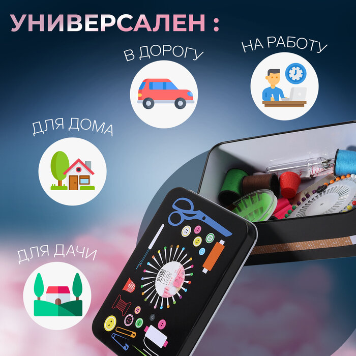 Арт Узор Набор для шитья, 86 предметов, в металлической коробке, 14,5 × 10 см