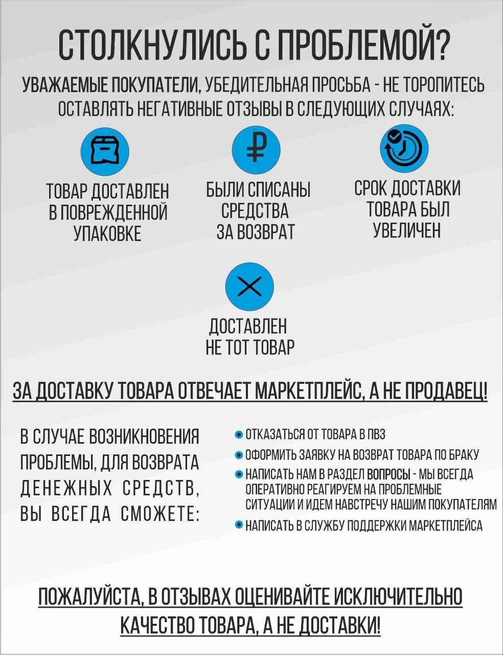| Отзыв: | Вот все бы изготавливали товары с таким же ответственным подходом к изделиям. Большая благодарность изготовителю !!! |