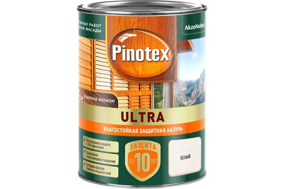 PINOTEX ULTRA лазурь защитная влагостойкая для защиты древесины до 10 лет белый (0,9л) new