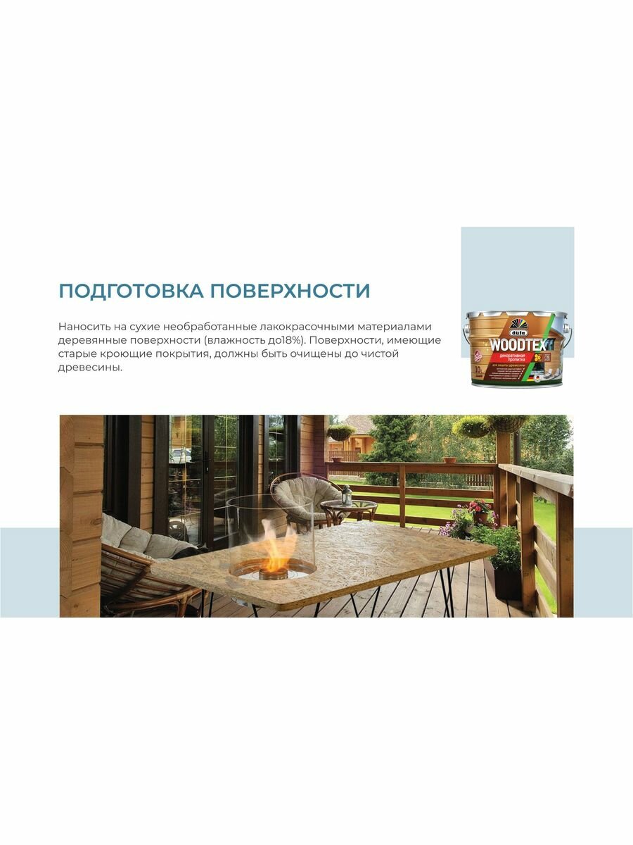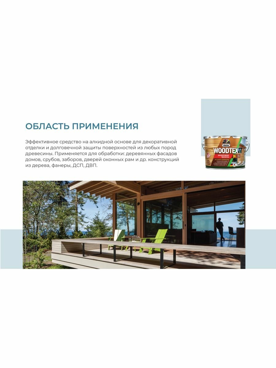 Декоративная пропитка для древесины Dufa Woodtex полуматовая (9л) бесцветный