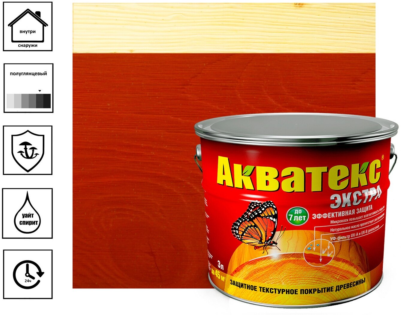 Акватекс Акватекс-Экстра защитно-декоративное покрытие для древесины алкидное полуглянцевое красное дерево 2,7л