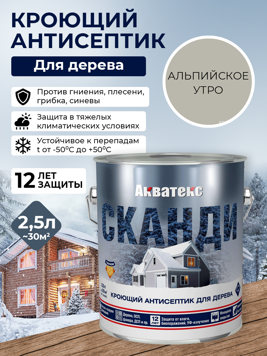 Кроющий антисептик для древесины акватекс Сканди альпийское утро 2.5 л