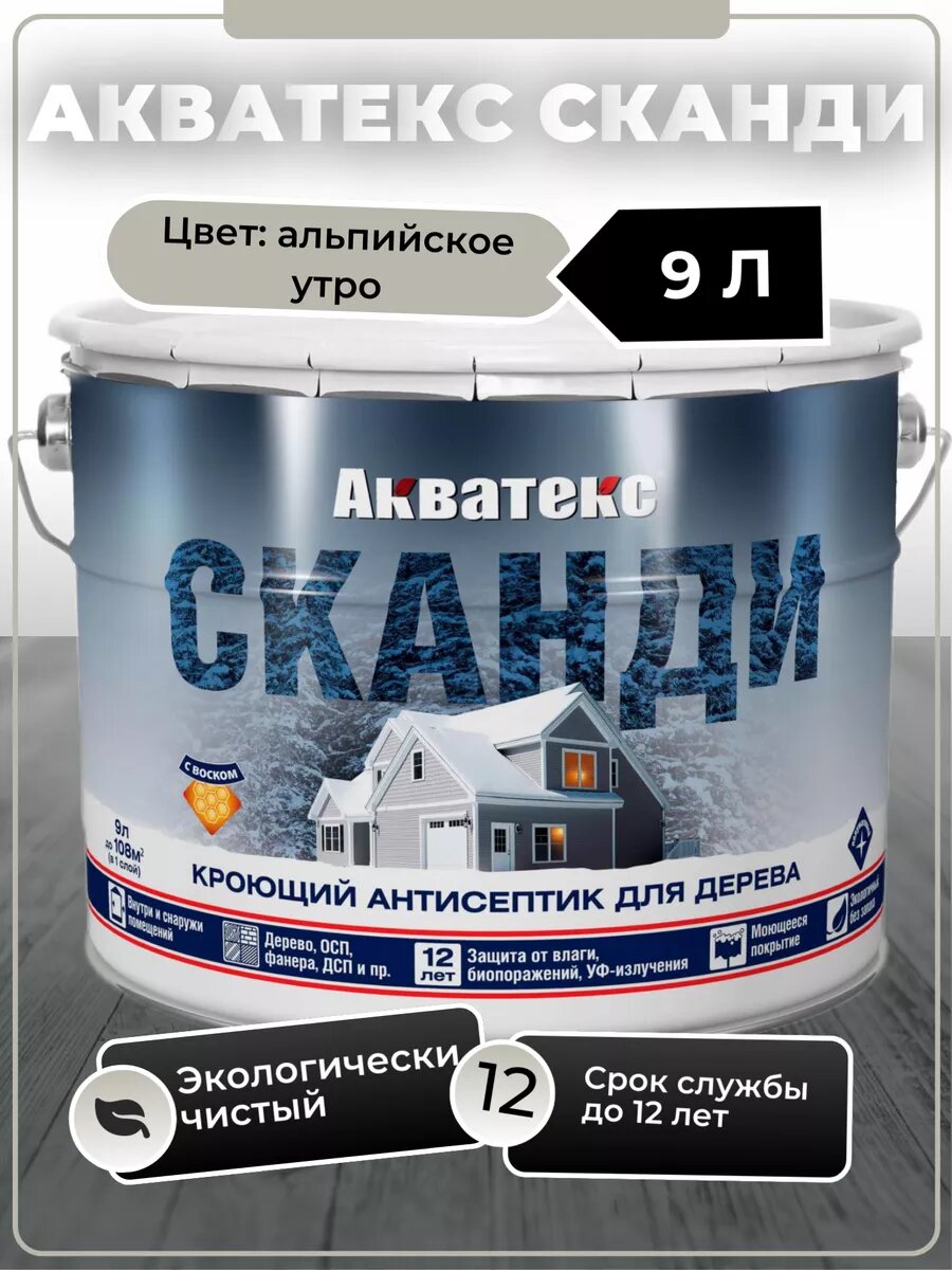 Купить Кроющий антисептик для древесины акватекс сканди (альпийское утро / 9л.)