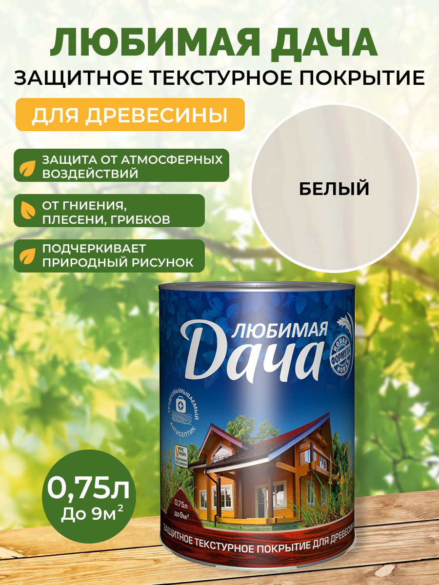 СохранитьЗащитно-декоративное покрытие для древесины Любимая дача, белый, 0,75л интересное: