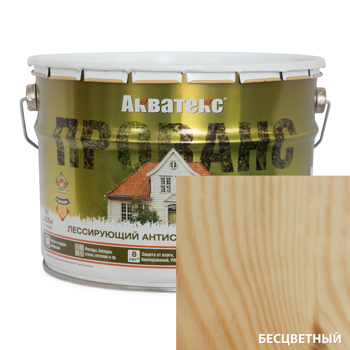 Акватекс Прованс антисептик для древесины лессирующий полуматовый 9л бесцветный