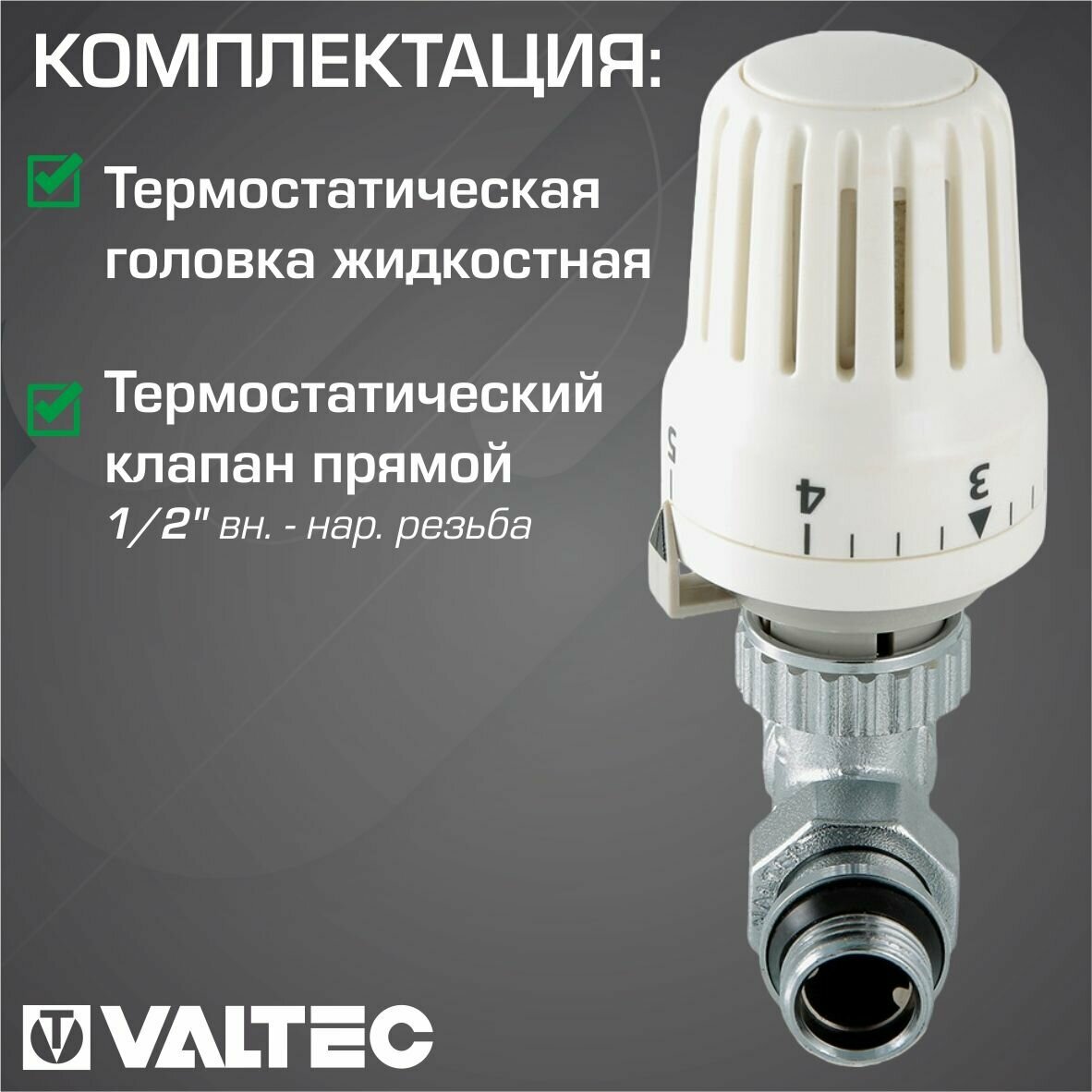 VALTEC Клапан термостатический прямой + термоголовка 1/2" VALTEC (Комплект)