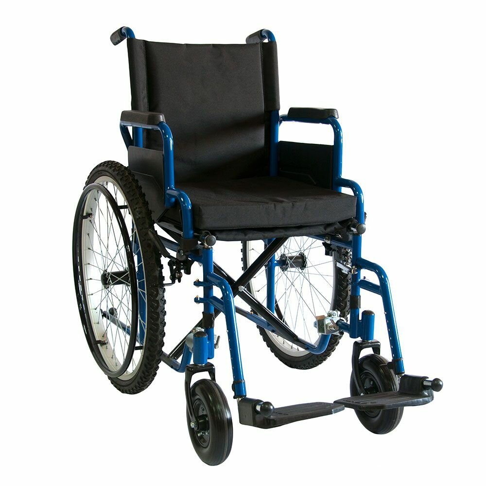 Кресло-коляска механическое Мега-Оптим 512AE, ширина сиденья: 410 мм/ткань, колеса (передние/задние): литые/пневматические, цвет: синий/черный