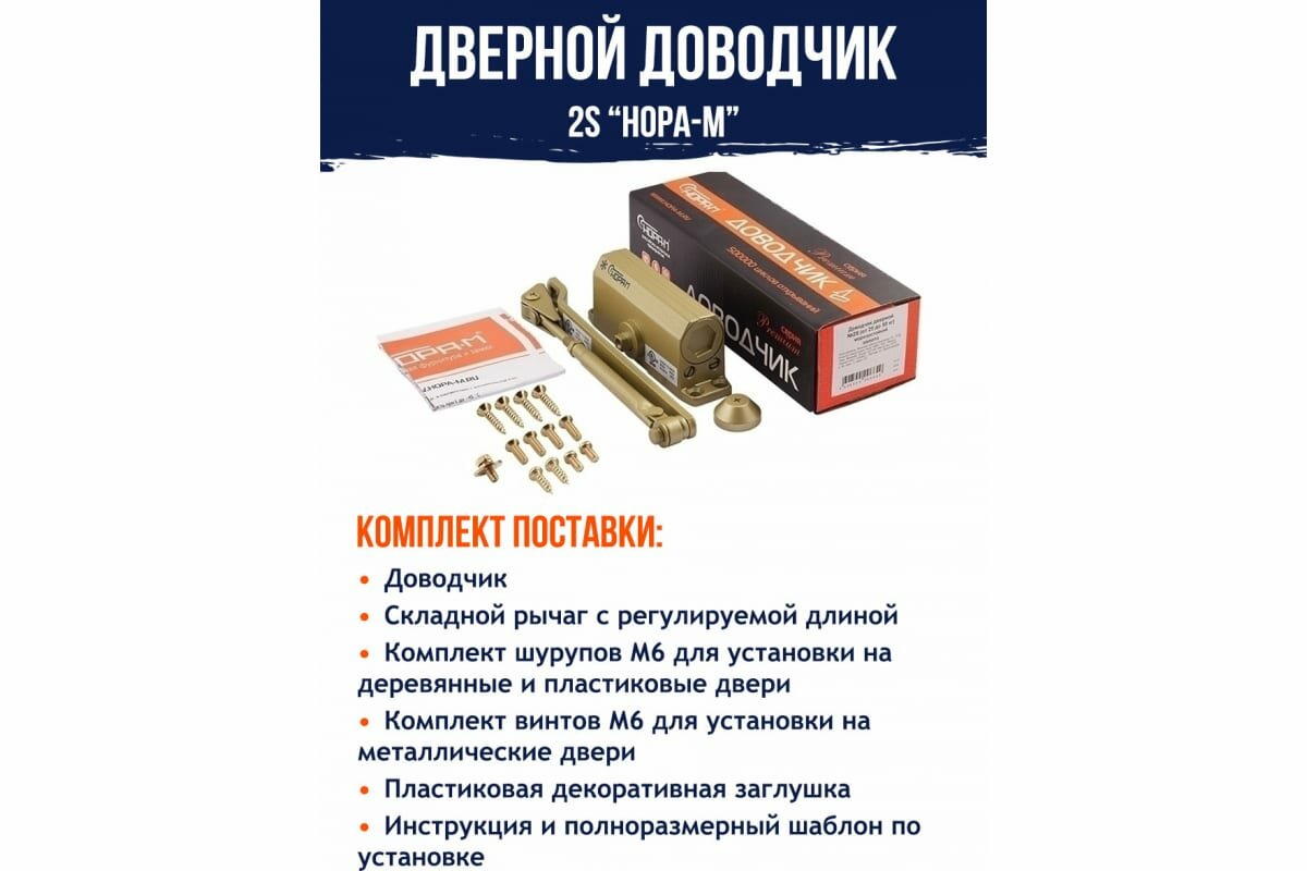 Доводчик дверной Нора-М 2S, 25-50 кг, золото (4986)