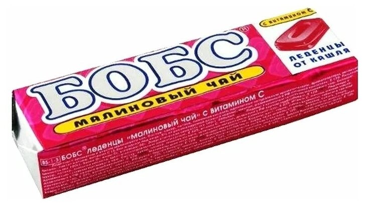 Леденцы бобс малиновый чай, витамин С, в упаковке 10 шт.
