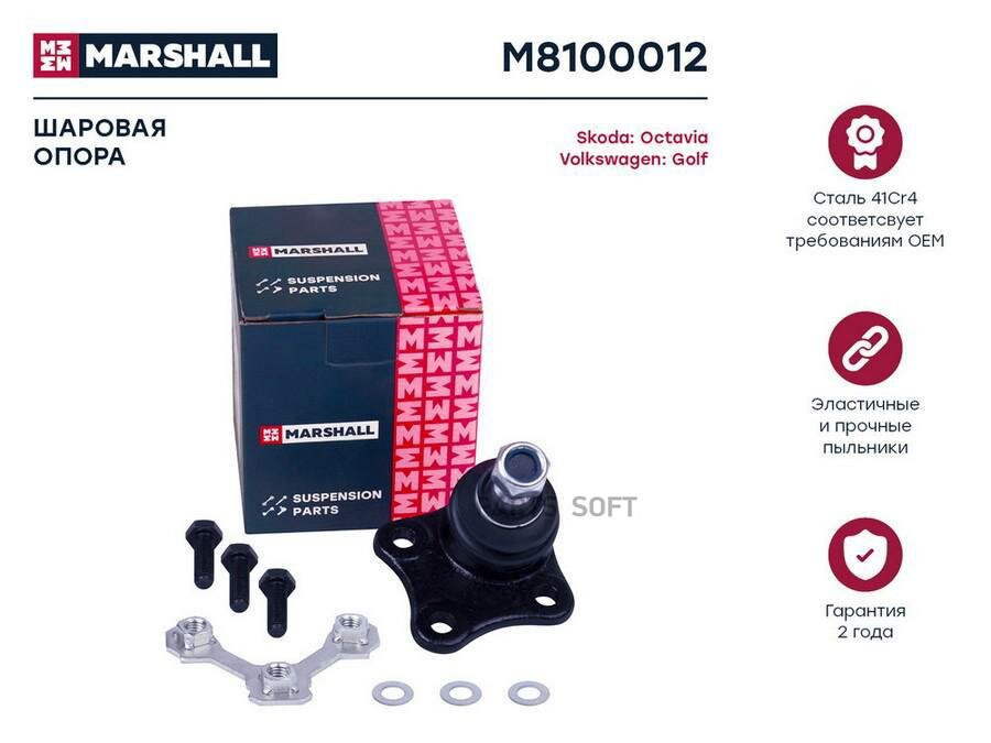 Купить M8100012_опора Шаровая Прав.! Vag A3 96>, Leon 99>, Toledo 98>, Octavia 96>, Bora 98>, Golf 97>, Ne MARSHALL арт. M8100012