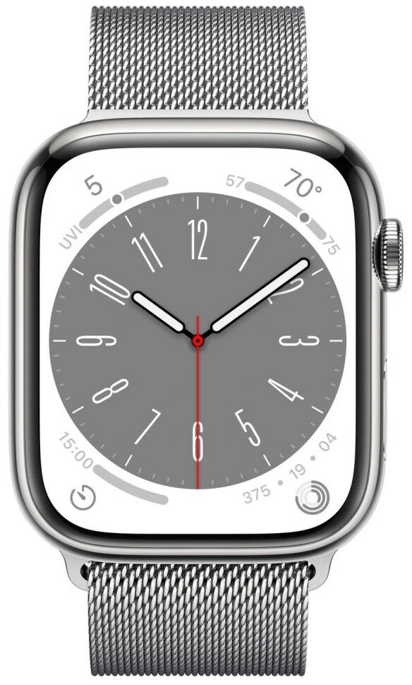 Купить Умные часы Apple Watch Series 8 45 мм Steel Case GPS + Cellular, silver milanese, R