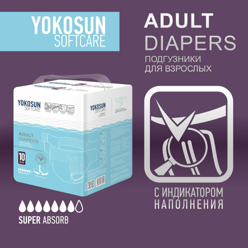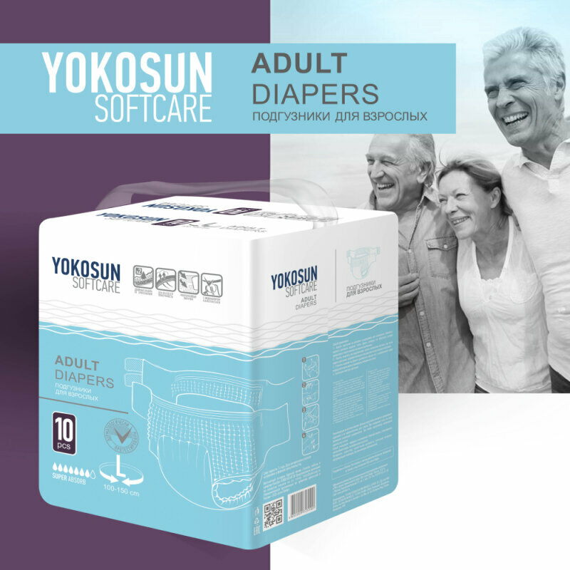 Подгузники для взрослых YokoSun Softcare Adult diapers, L, 100-150 см, 10 шт.
