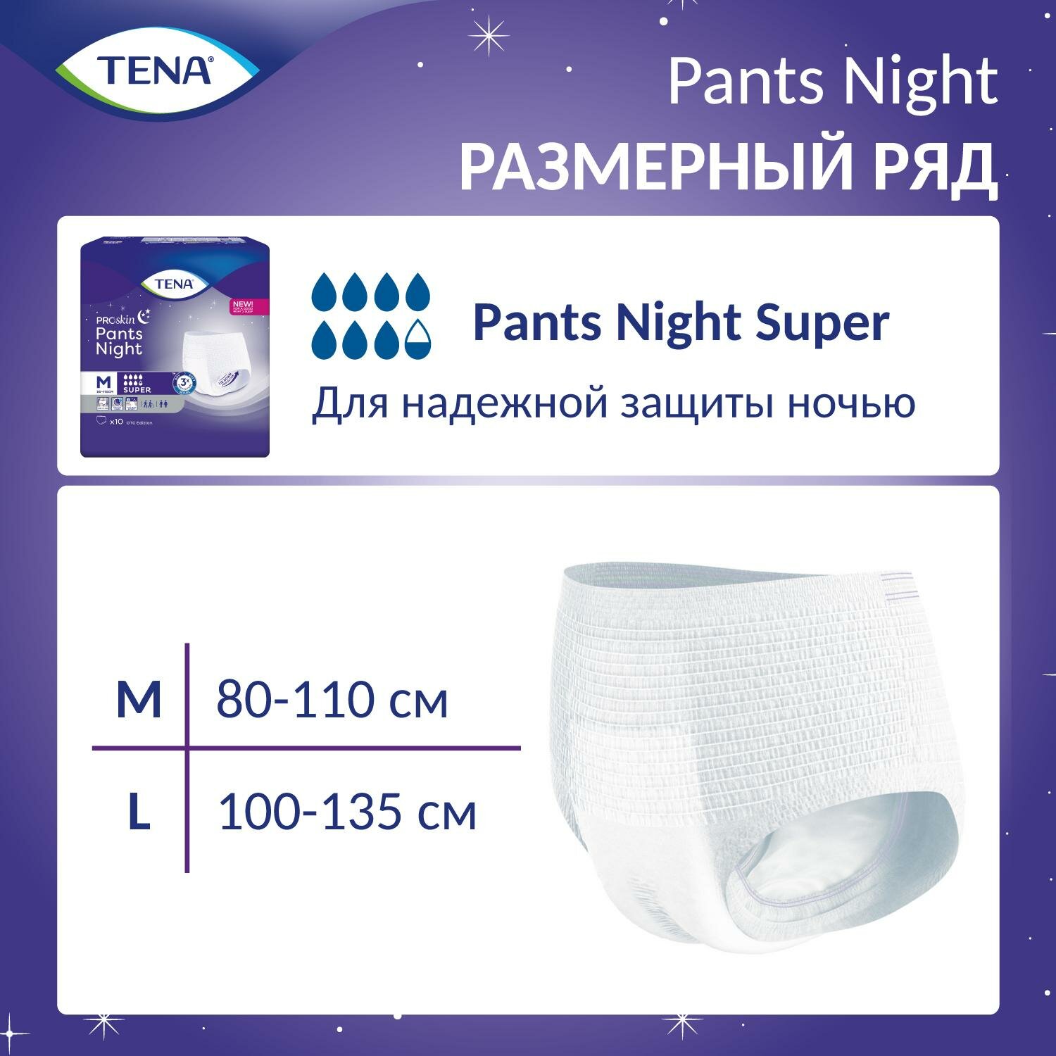 Подгузники-трусы Tena Pants Night Super Medium, объем талии 80-110 см, 10 шт.