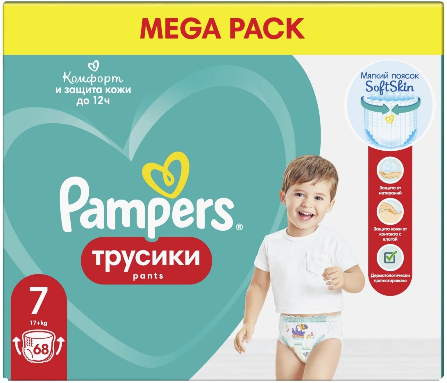 Подгузники-трусики Pampers Pants для малышей 17+ кг, 7 размер, 68 шт