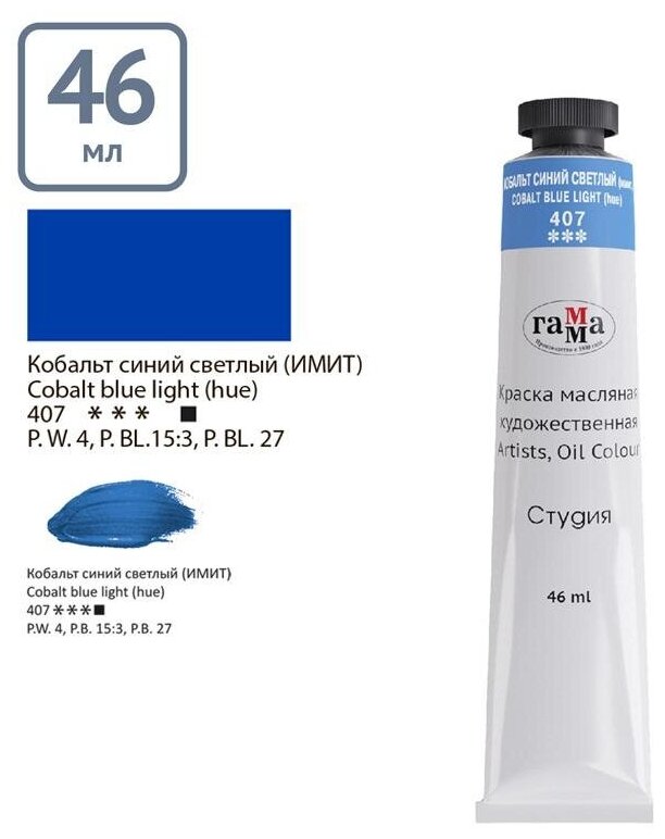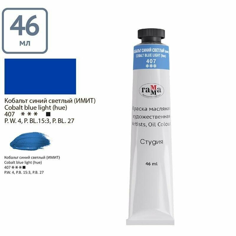 Купить Краска масляная художественная Гамма "Студия", 46 мл, туба, кобальт синий светлый (имитация) (0.00.А046.407)