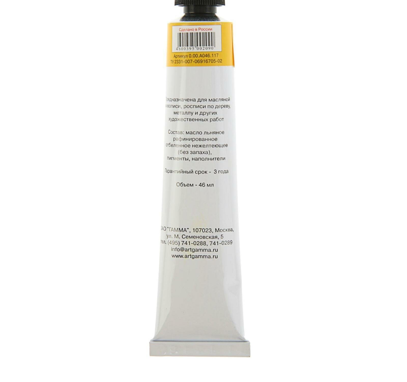Купить Гамма Краска масляная в тубе 46 мл, Гамма "Студия", №117 кадмий жёлтый средний, имитация