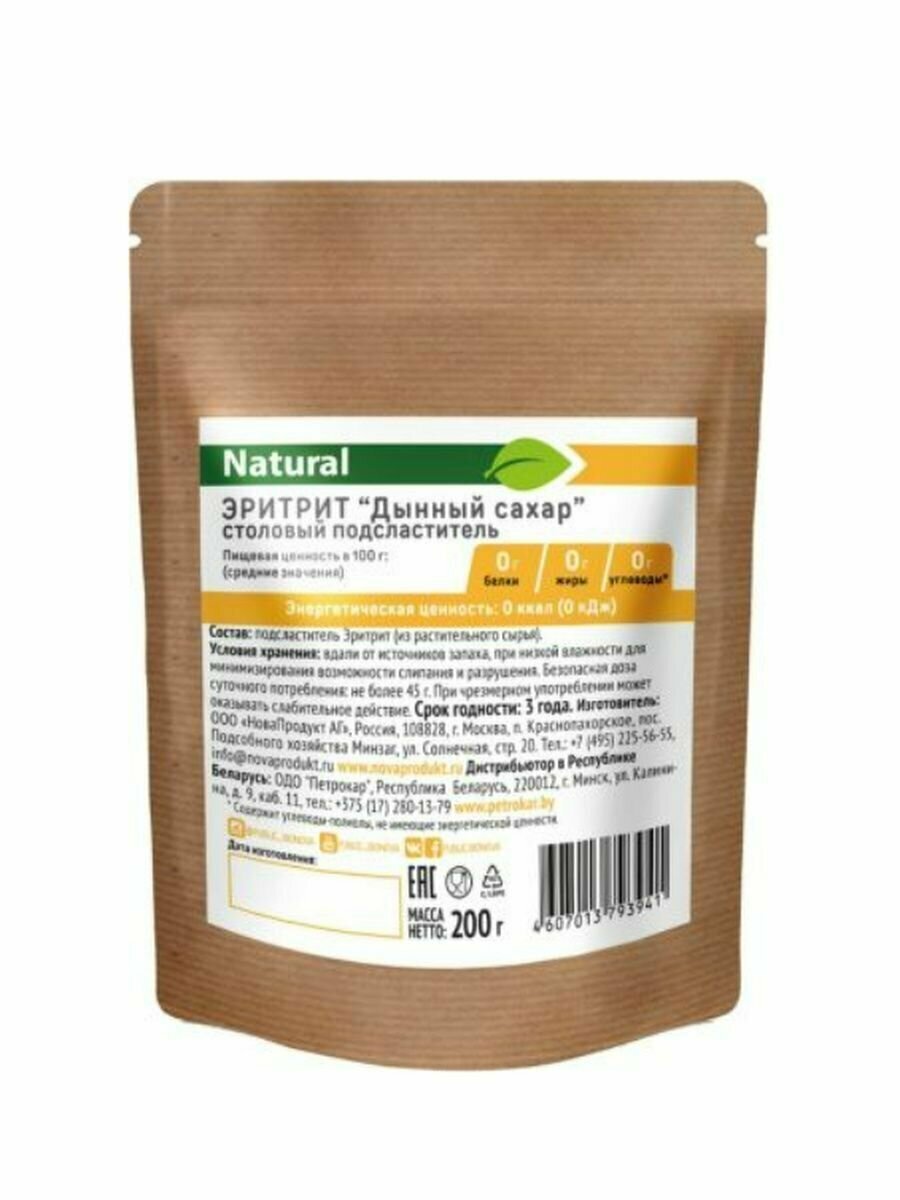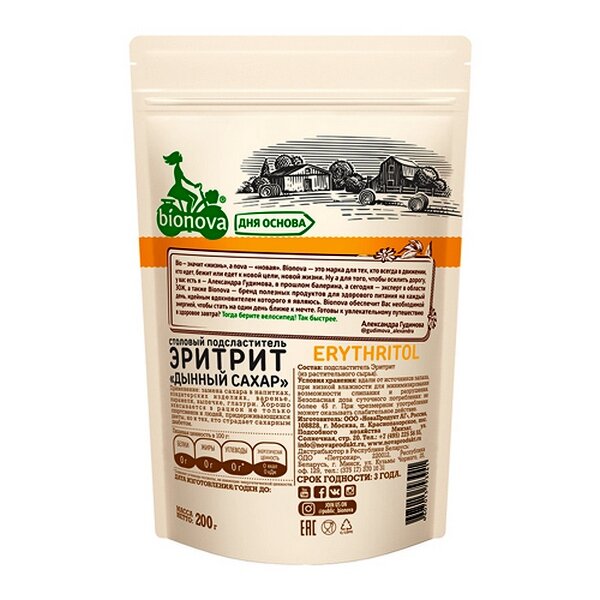 BIONOVA Подсластитель Эритрит Дынный Сахар (дой пак) 200гр