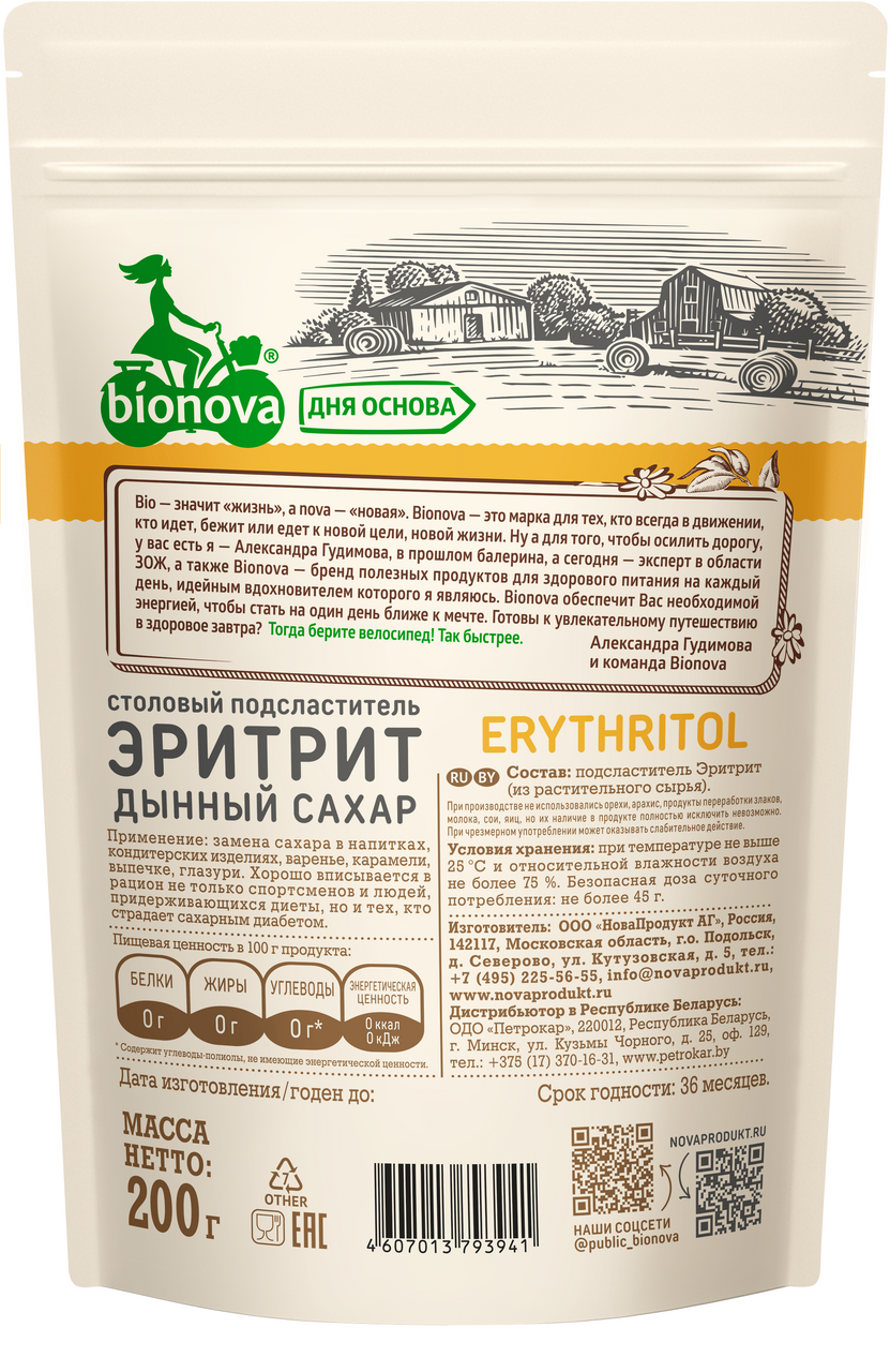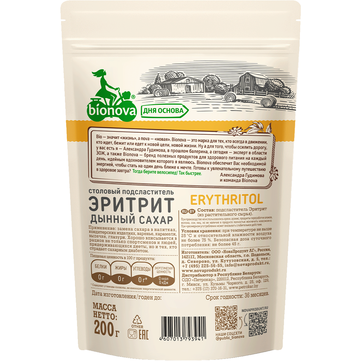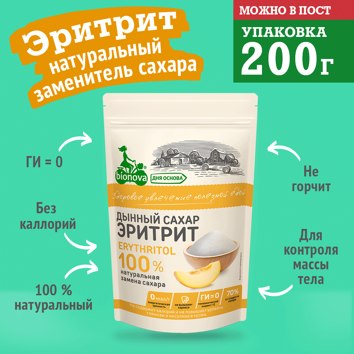 BIONOVA Сахарозаменитель Эритрит порошок, 200 г