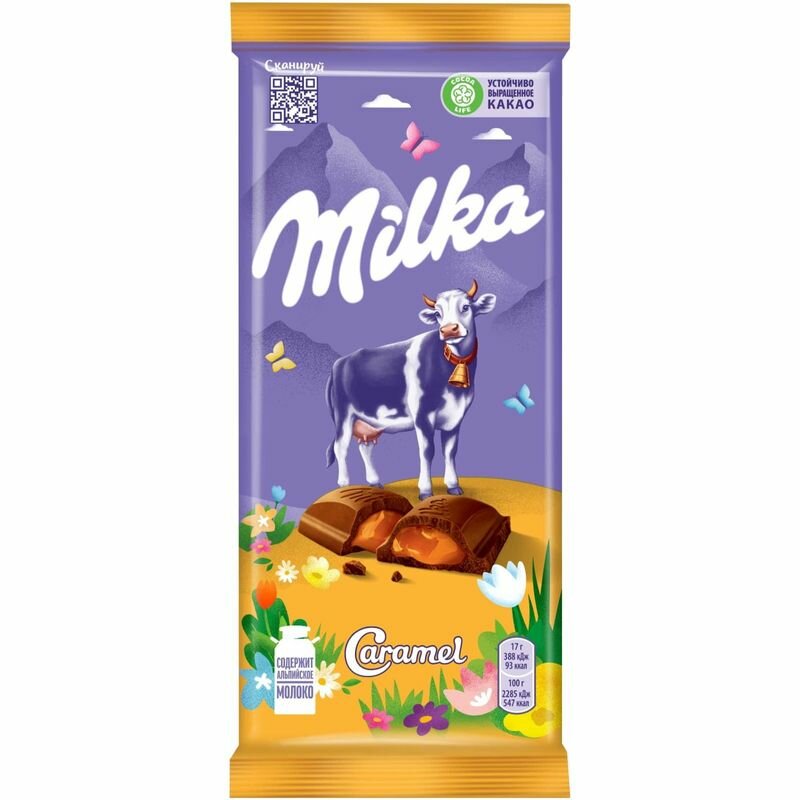 Шоколад молочный MILKA с карамельной начинкой, 90г