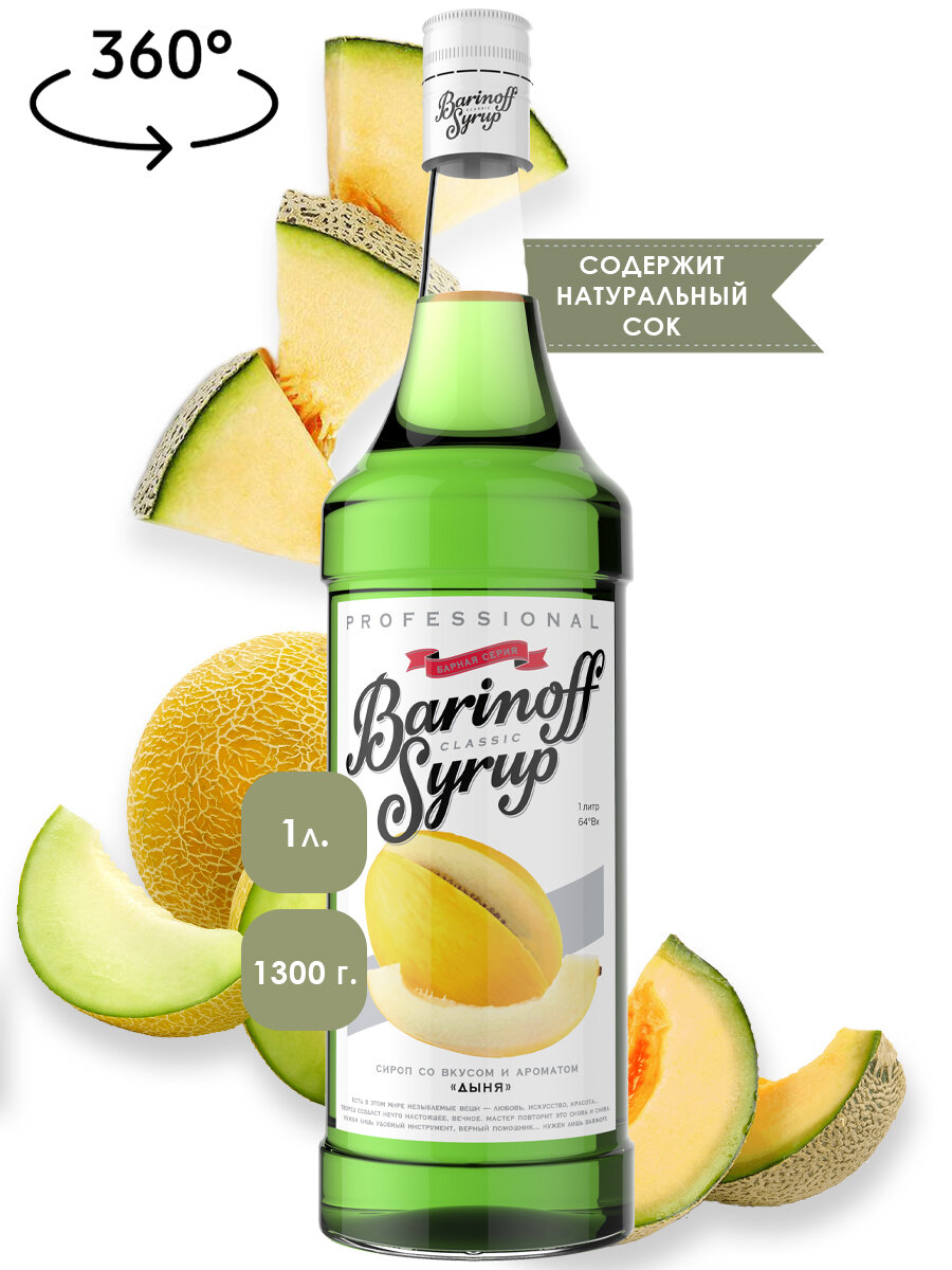 Сироп Barinoff Дыня (для кофе, коктейлей, десертов, лимонада и мороженого), 1л