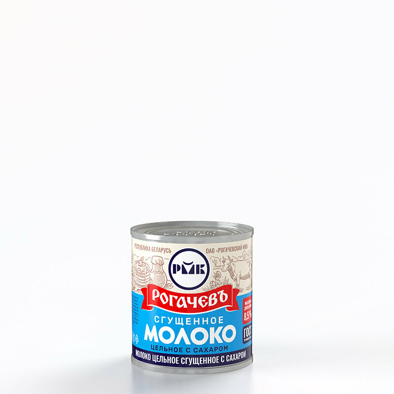 Молоко цельное сгущённое Рогачевъ с сахаром 8,5% ж/б ГОСТ рмкк 380 г