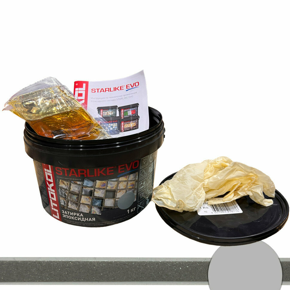 СохранитьЗатирка для плитки двухкомпонентная на эпоксидной основе Litokol Starlike EVO (1кг) S.110 grigio perla интересное:
