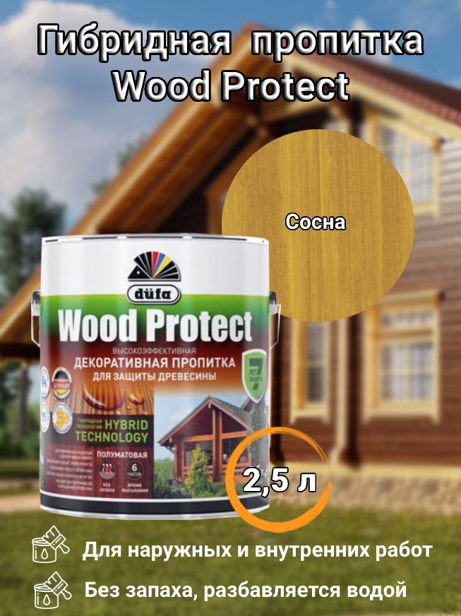 Dufa Wood Protect / Дюфа Вуд Протект Пропитка декоративная для защиты древесины сосна 2,5л
