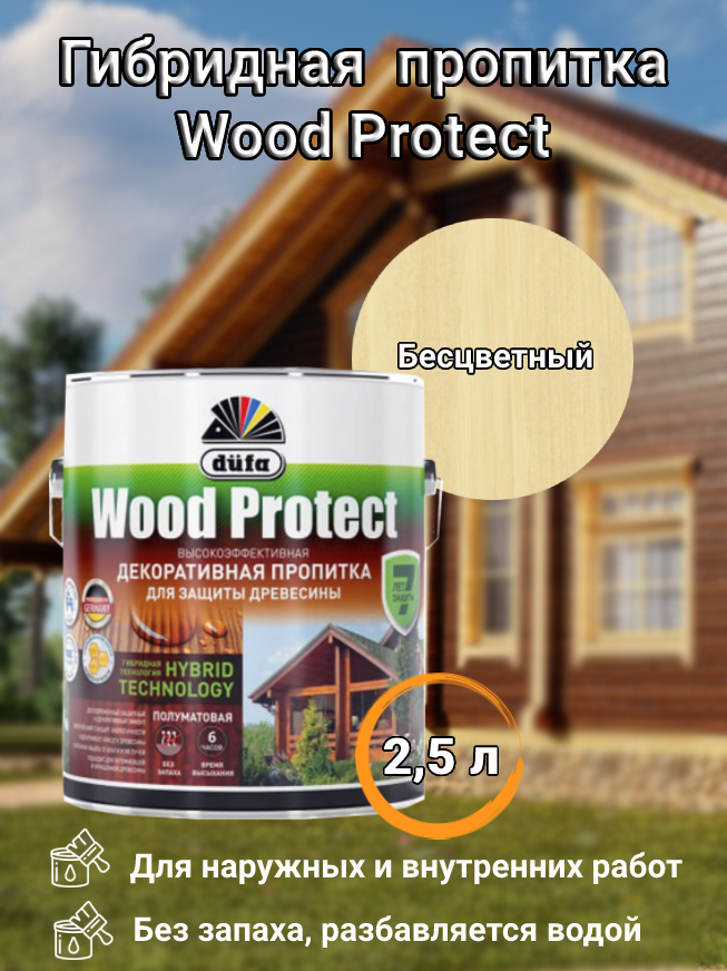 Dufa Wood Protect / Дюфа Вуд Протект Пропитка декоративная для защиты древесины бесцветный 2,5л