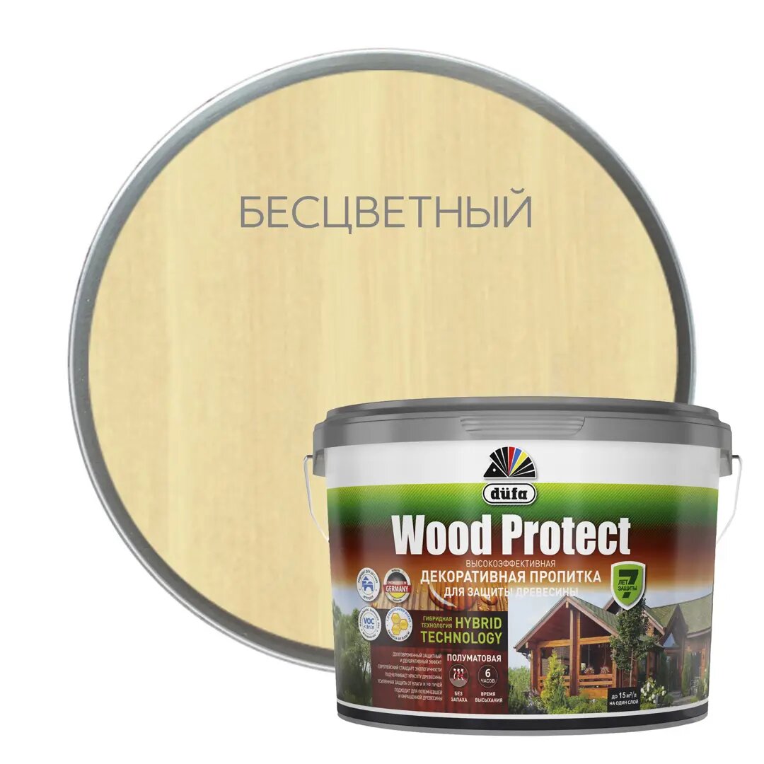 Пропитка декоративная Dufa Wood Protect для защиты древесины бесцветный 10л