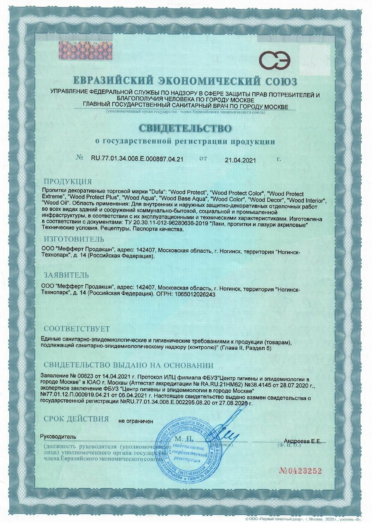 Dufa ООО "Мефферт Продакшн" "" Пропитка WOOD PROTECT бесцветная 9л МП00-011078