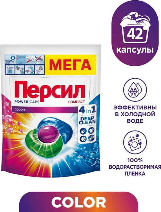 Купить Persil капсулы Power Caps Color 4 in 1, контейнер, 1 уп., 42 шт.